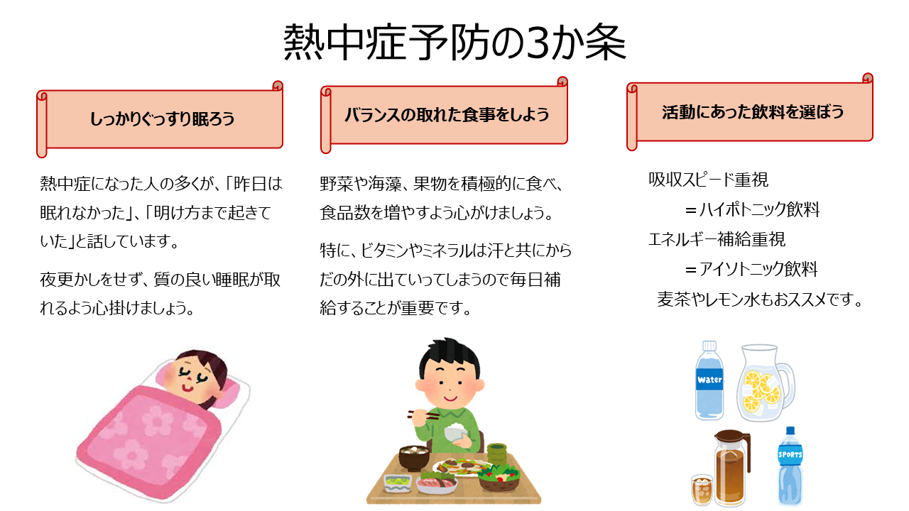 熱中症について① 2025.06.9 今回から3週に分けて、熱中症について紹介します。 熱中症について知識を身につけ、予防・対策を講じてスポーツを楽しみましょう! Tweet Share Hatena Pocket RSS feedly Pin it 同志社大学準硬式野球部 全日本選手権出場!(指導チーム報告) 前の記事 熱中症について② 次の記事